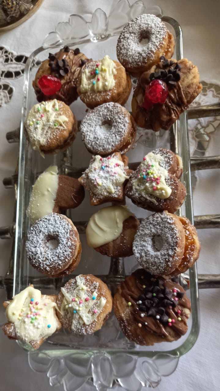 "Montagna innevata " con lamponi,Stollen Austriaco,Scorzette candite di arance,Paste di mandorla,Riccetti al cioccolato,Torrone alle mandorle,Mandorle glassate al cioccolato...ed...io...Juliett BUKA