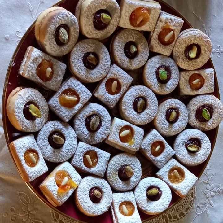 Biscotti sable' con mele cioccolato e zucchero moscovado,Insalata quasi nizzarda,pizzette siciliane,toast,strudel,tortino cuore caldo,cozze ripiene,tortino cuore pistacchio,"sformatino cassatina" rivisitata